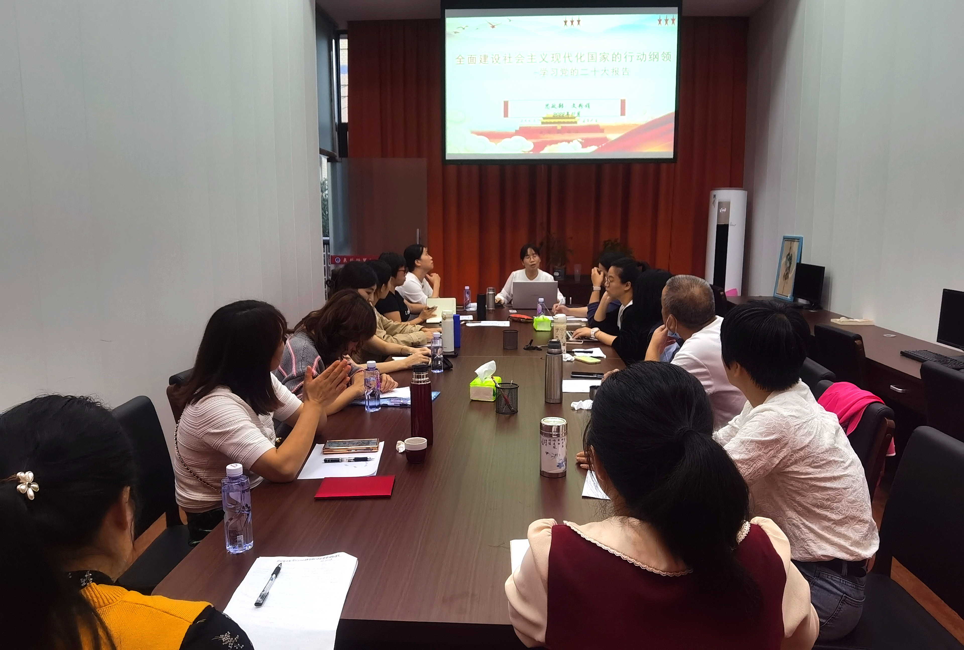 最后她强调:党的二十大报告是一次高举旗帜、凝聚力量、团结奋进的大会。大会通过的报告视野宏阔、底蕴深厚、内涵丰富、系统深刻,是夺取新时代中国特色社会主义新胜利的政治宣言和行动纲领,是一篇马克思主义的纲领性文献。要求每位思政课教师要坚持用习近平新时代中国特色社会主义思想铸魂育人,结合自己研究专长,全面深入学习领会党的二十大精神的丰富内涵和核心要义,把学习党的二十大报告与学习新修订的党章,与学习习近平总书记在党的二十届一中全会上的重要讲话精神相结合,把党的二十大精神学深悟透,并第一时间融入到思政课教学中,推动党的二十大精神全面进教材、进课堂、进头脑,努力培养造就堪当民族复兴重任的时代新人。
