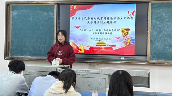 赛前,通过动员和宣传,学生根据比赛活动方案以及思政课上“课前三分钟讲故事”活动要求,对“四史”进行了广泛而深入的学习,并在思政课的“课前三分钟讲故事”活动中得到了锻炼。此外,指导老师对参赛作品的精心指导,使得此次比赛涌现出很多优秀的作品。此次比赛由思政部政治理论教研室主任负责主持,邀请了思政部五位教师做评委,各系部总有16支队伍参赛。经过现场讲故事和评委评审,共评选出一等奖2名、二等奖3名、三等奖5名,其中,信安211班郑建鹏的《民族脊梁》和大数据221李依玲的《峥嵘岁月 永不褪色》荣获比赛一等奖。
