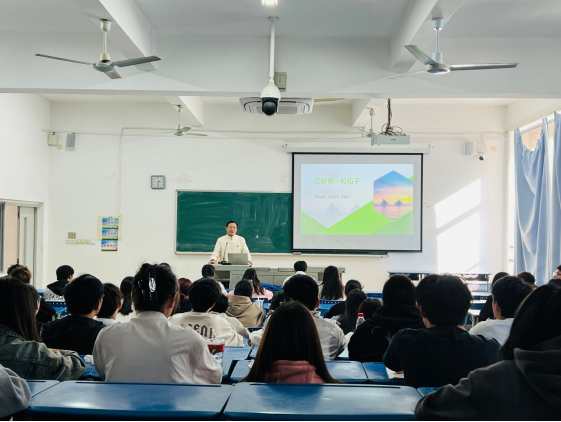 郭根才介绍了新时代廉洁文化建设的内容,用丰富的理论、详实的案例,从立身如“木”、精神如“水”、为人如“土”、正气如“火”等几个角度,结合自身工作、学习经历,剖析了廉洁文化建设的意义,交流分享“扣好第一粒扣子”主题的感想体会。他强调:年轻人是新时代的追梦者,又是大国梦的传承者,更是未来的创造者、建设者和领导者,要发挥自身优势,贡献自己的力量,把握“四行”修炼。他勉励学生要时刻牢记使命和责任,扣好人生的第一粒扣子,紧跟廉洁文化建设之风,坚持廉洁向上,自律加强,行稳致远,绽放生命之花,为国之大者而努力奋斗,努力奉献,堪当大任,向自己、向人民、向时代交一份合格的答卷。